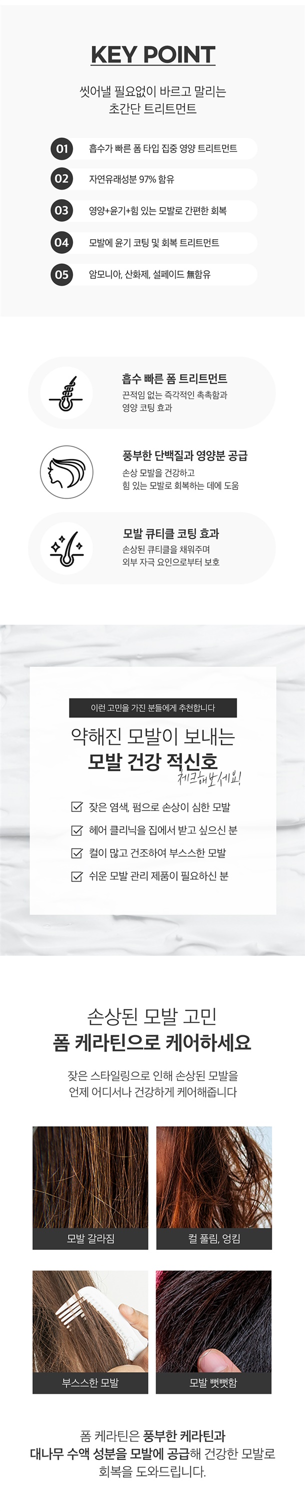 잦은염색때문에 머리결이점점건조해지고 푸석푸석한것같아서 드라이하기전폼케라틴발라주면 머리결이 차분해지고 촉촉해져요