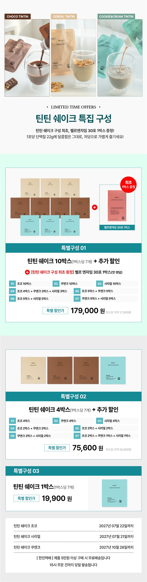 처음 먹어봤는데 단백질 쉐이크 특유의 가공된 맛이 안 나요. 너무 맛있어요. 초코틴틴+시리얼틴틴 10박스 주문 한 거 너무 잘 한 것 같아요. 특히 체중조절용 쉐이크라 야식 당길 때 먹으면 딱이에요. 맛있고 배도 든든해서 체중조절 진짜 잘 될 것 같아요! 팩에 보면 진하게 연하게 점선 표시도 되어 있어서 입맛에 따라 먹을 수 있어서 좋아요. 간편하고 좋은 성분 다 모아둔 제품 만들어 주셔서 감사합니다. 쿠션도 다이아샷 앰플도 다이아크림도 립글로즈도 너무 다 좋아요.